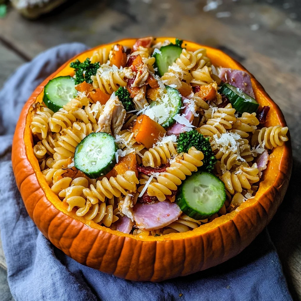 UpChuckin’ Pumpkin Loaded Pasta Salad is a vibrant and hearty dish that brings festive flair to any gathering. This colorful rotini pasta salad features a delightful combination of fresh vegetables, tender chicken, and savory cheese, all enhanced by a zesty Italian dressing. The unique addition of pumpkin not only provides a seasonal touch but also ensures that this salad is both visually stunning and deliciously satisfying. Perfect for Halloween parties, potlucks, or family dinners, this easy-to-make salad can be prepared in advance, allowing the flavors to meld beautifully. Impress your guests with this creative twist on a classic pasta salad.
